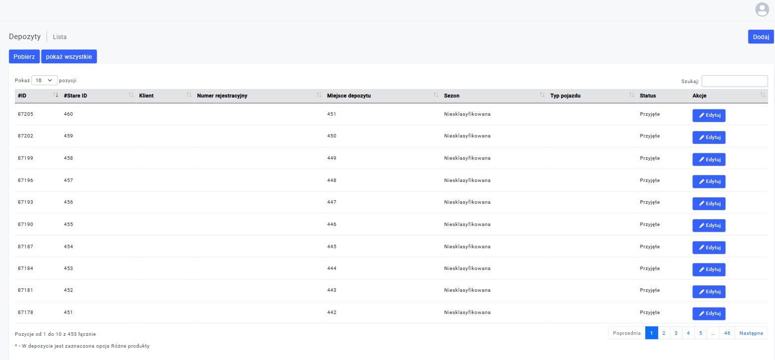 Możesz pobrać listę opon, dzięki czemu masz pełny wgląd w stan przechowalni. Ułatwi Ci to pracę podczas sezonowych wymian. Szybciej sprawdzisz jakie opony są dostępne, ich rozmiary, stan techniczny oraz ilość.